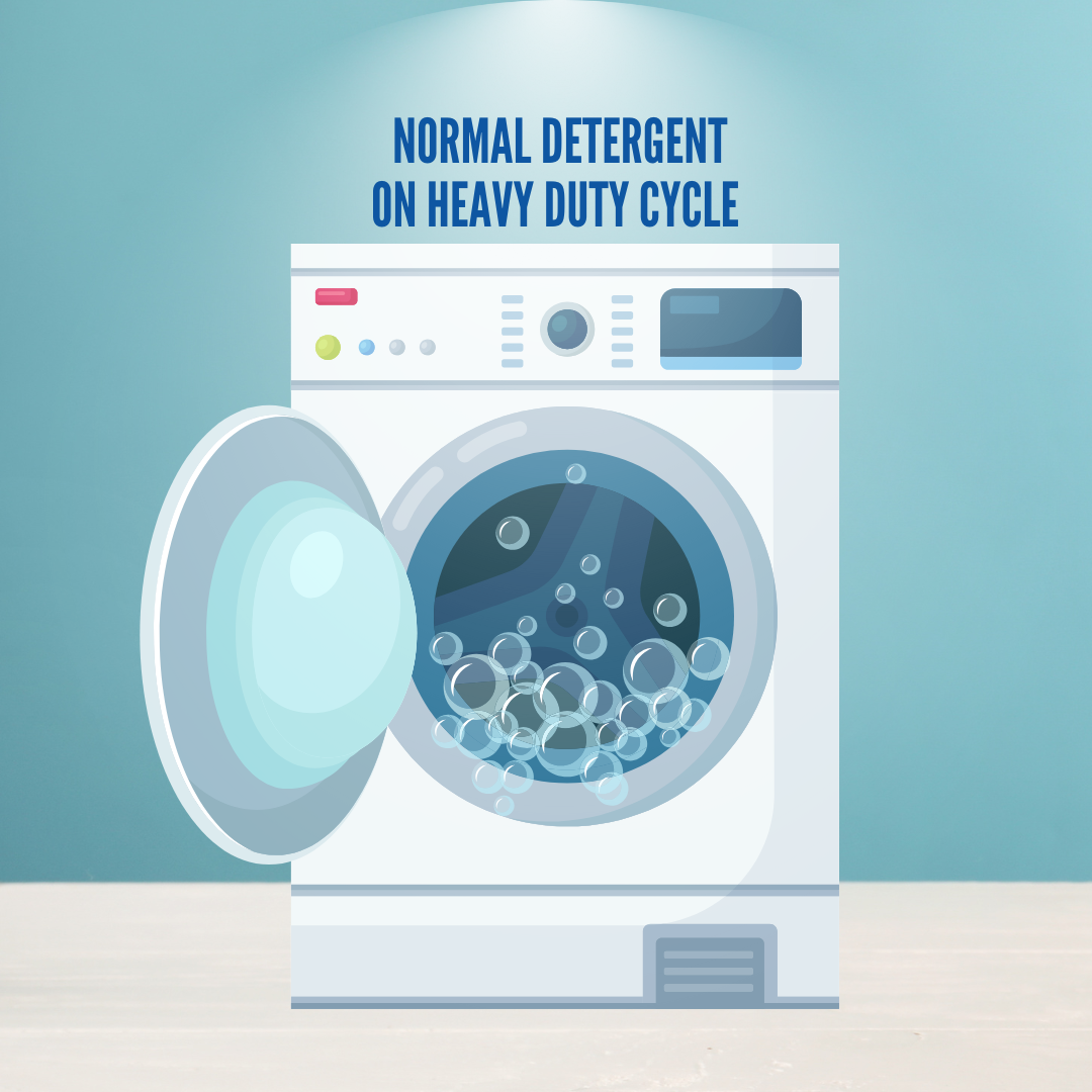 Wash with your regular detergent (we recommend Tide) on a heavy-duty cycle.